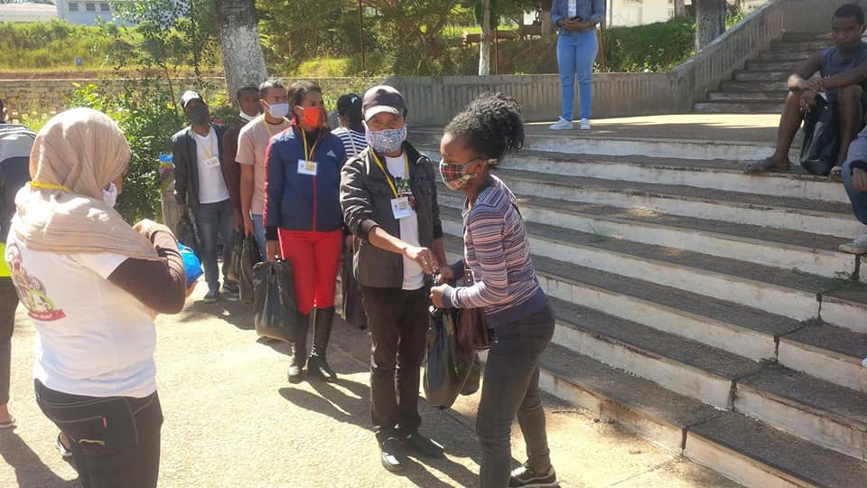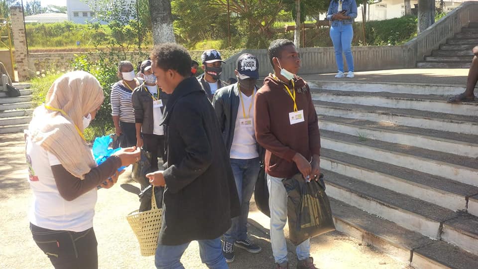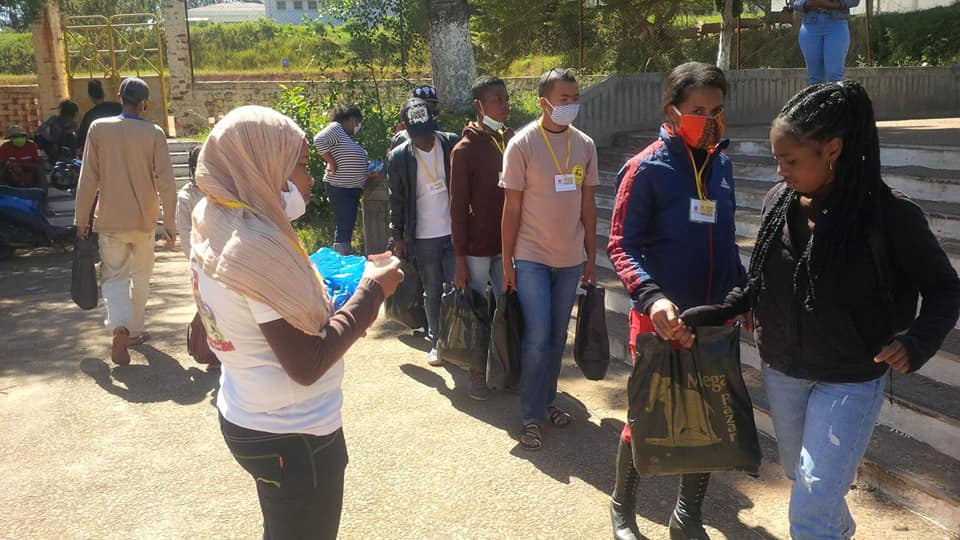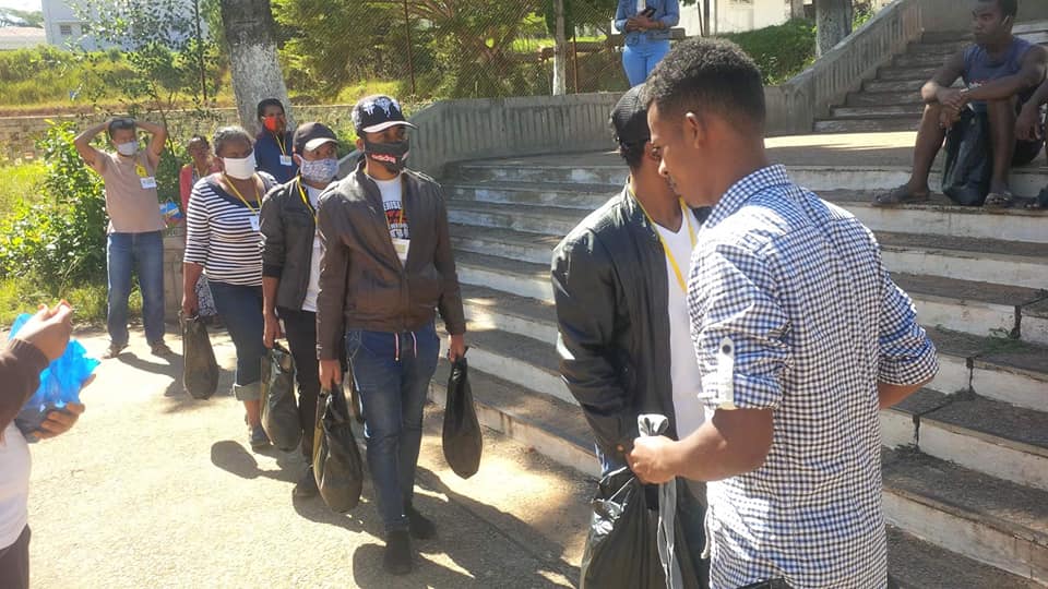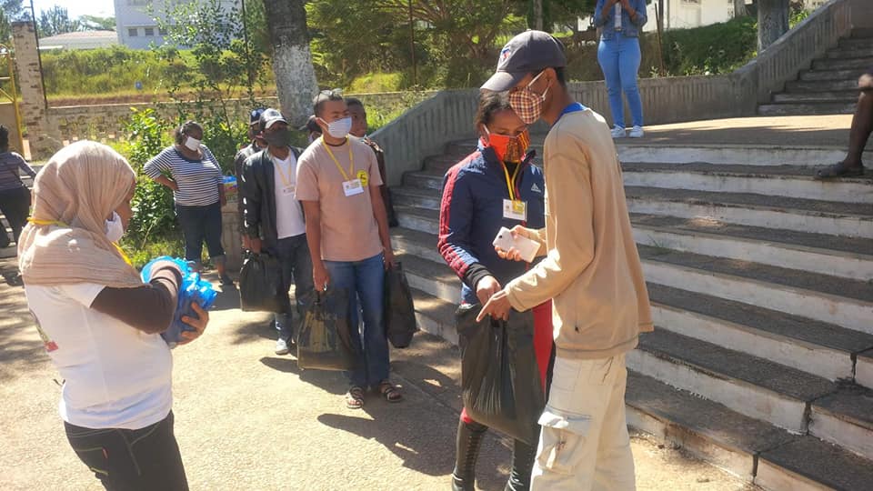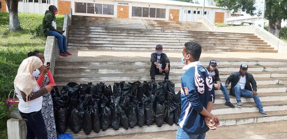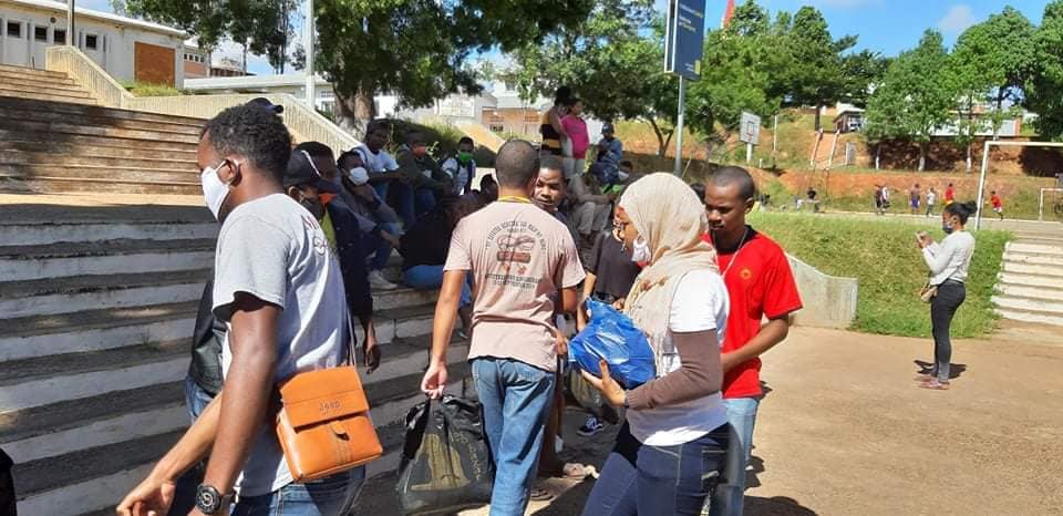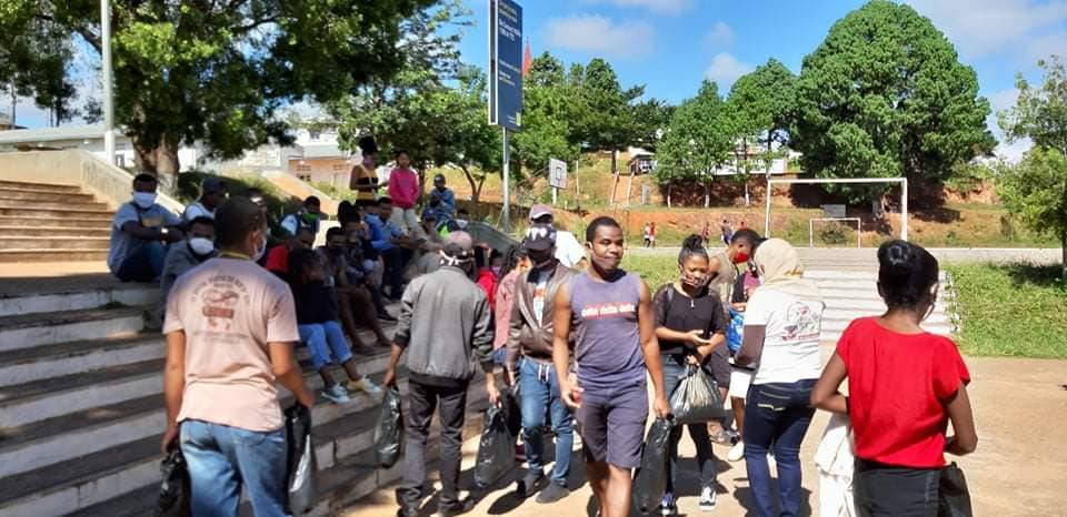 -> 46 demis-paniers garnis ont été distribués individuellement aux 46 #étudiants de l’université de Fianarantsoa qui n’ont pas pu rentrer chez eux.